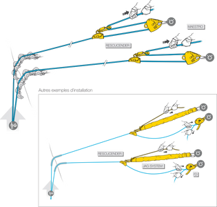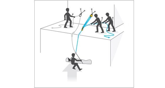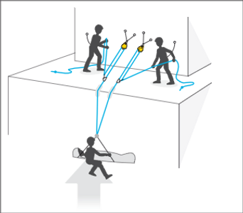 All hauling and positioning forces are concentrated on the work rope. The belay rope is set up and kept taut enough to hold the load in the event of anchor or work rope failure.